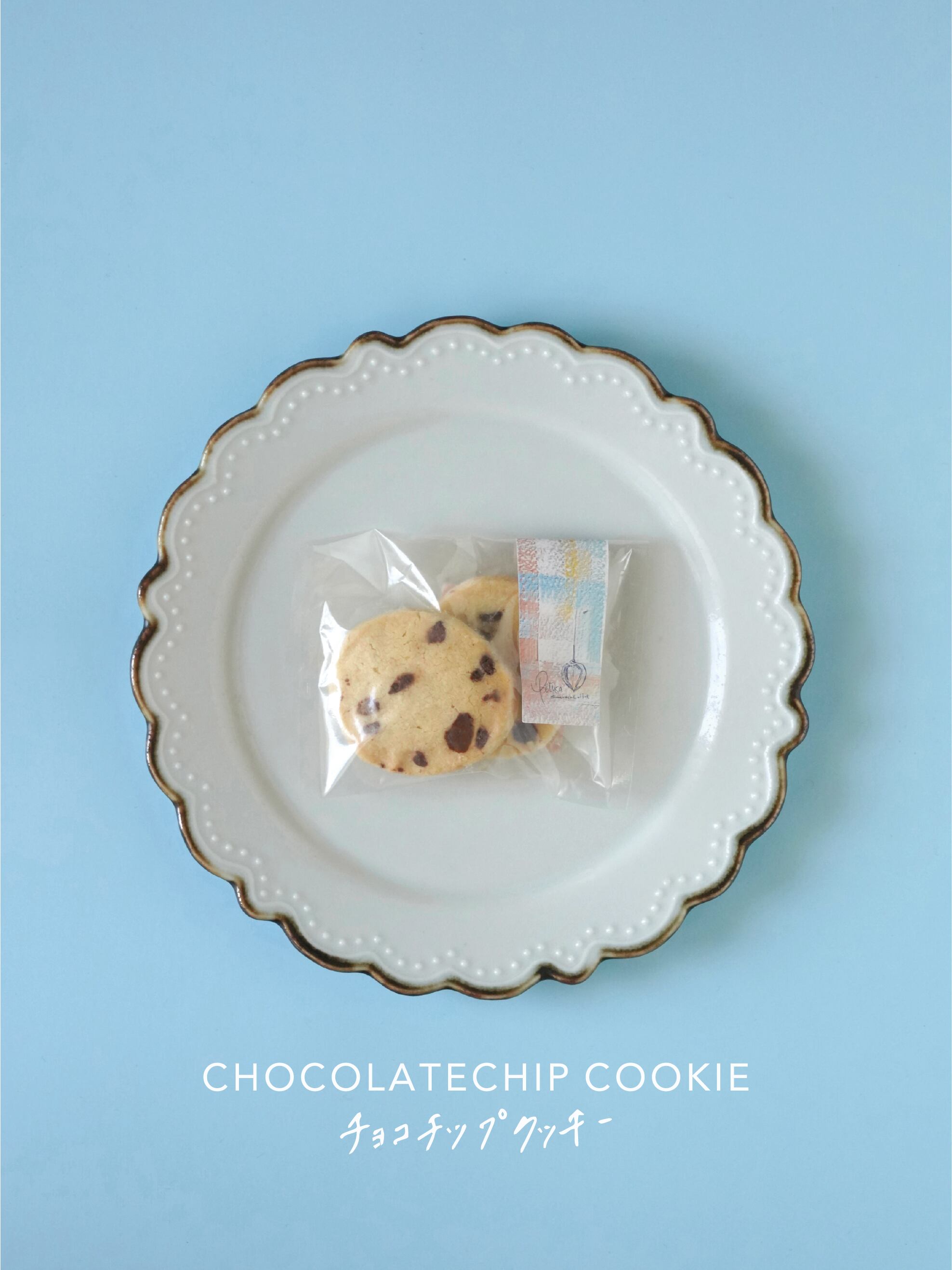 【チョコチップクッキー】小麦粉、発酵バター、アーモンドプードル、きび糖、チョコレート、牛乳、グラニュー糖