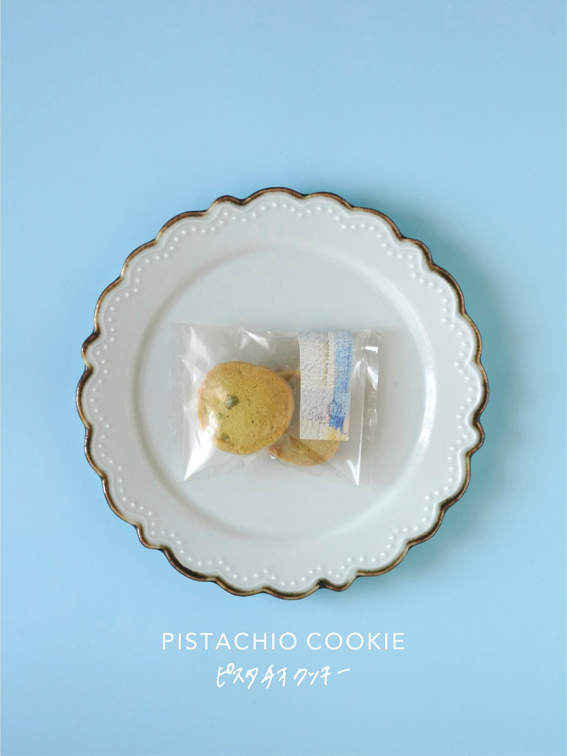【ピスタチオクッキー】小麦粉、発酵バター、きび糖、アーモンドプードル、ピスタチオ、牛乳、グラニュー糖